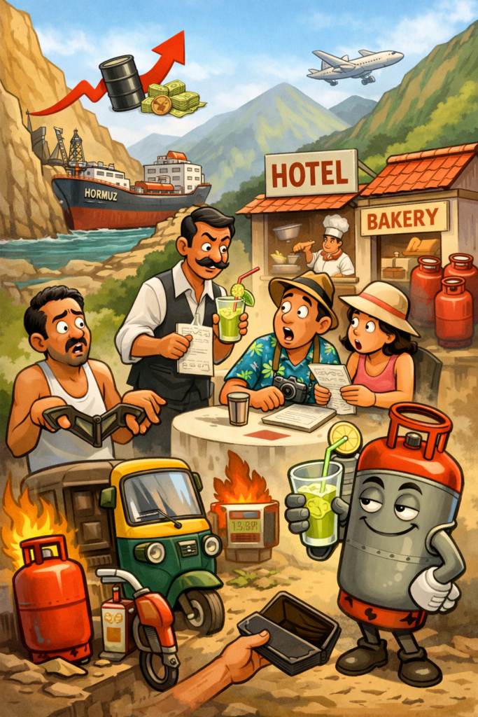 ഇടുക്കി ജില്ലാ ആസ്ഥാനത്ത് ഒരു പുതിയ ശാസ്ത്ര കണ്ടുപിടിത്തം!ഇനി സോഡാ നാരങ്ങാവെള്ളം ഉണ്ടാക്കാൻ കാർബൺ ഡയോക്സൈഡ് വേണ്ട… എൽ പി ജി ഗ്യാസ് മതിയെന്നാണ് ചില ഹോട്ടൽ-ബേക്കറി ഉടമകളുടെ കണ്ടെത്തൽ!ഹോർമോസ് കടലിടുക്കിൽ പ്രശ്നമുണ്ടായാൽ മിഡിൽ ഈസ്റ്റിൽ എണ്ണവില കൂടും…പക്ഷേ ചെറുതോണിയിൽ അതിന്റെ ആഘാതം ആദ്യം തട്ടുന്നത് നാരങ്ങാവെള്ളത്തിനാണെന്നതാണ് പുതിയ ലോക്കൽ ഇക്കണോമിക്സ്. ഗ്യാസ് വില കൂടിയല്ലോ സാറേ…എന്ന മറുപടി പറഞ്ഞ് 15 രൂപയ്ക്ക് കിട്ടേണ്ട സോഡാ നാരങ്ങാവെള്ളം 25 രൂപയ്ക്ക് വിൽക്കുമ്പോൾ,ചോദിക്കാൻ വരുന്നവർക്കൊരു സംശയം മാത്രം ഇത് സോഡയാണോ… അതോ സിലിണ്ടറാണോ. സാധാരണയായി സോഡാ ഉണ്ടാക്കാൻ ഉപയോഗിക്കുന്നത് കാർബൺ ഡയോക്സൈഡ് ഗ്യാസാണ്. എൽ പി ജി ഗ്യാസ് അടുപ്പിൽ ഉപയോഗിക്കാനാണ്…എന്നാൽ ഇടുക്കിയിലെ ചില കടകളിൽ അടുക്കളയിലെ ഗ്യാസും, ഗ്ലാസ്സിലെ സോഡയും ഒരേ ഒരേപോലെ തീ വിലയാണ്.