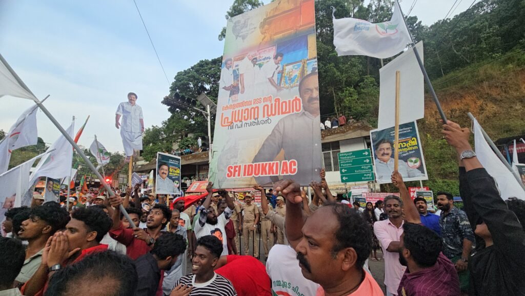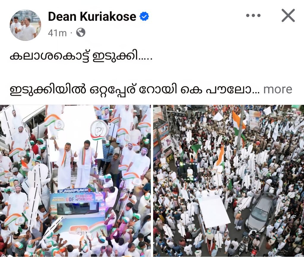 പോലീസ് വലിയ തോതിൽ ഓരോ വിഭാഗങ്ങളുടെയും ഇടയിൽ സ്ഥാനം പിടിച്ചിരിക്കുന്നത് ചിത്രത്തിൽ വ്യക്തമാണ്. എന്നാൽ അത് മുഴുവനും തങ്ങളുടെ പ്രവർത്തകരാണെന്ന രീതിയിലാണ് ഫോട്ടോ പ്രചരിപ്പിച്ചിരിക്കുന്നത്. ഇതുതന്നെ തങ്ങളുടെ പാളയത്തിനുള്ളിലെ പരാജയഭീതിയാണ് മറനീക്കി പുറത്തുവന്നത്.എൻഡിഎയുടെ സ്ഥാനാർഥി പ്രതീഷ് പ്രഭയും ചെറുതോണിയിലെ കൊട്ടിക്കലാശത്തിൽ പങ്കെടുത്തു. അതേസമയം എൽഡിഎഫിന്റെ നിയോജകമണ്ഡല തല കൊട്ടിക്കലാശം കട്ടപ്പനയിൽ ആയിരുന്നു.